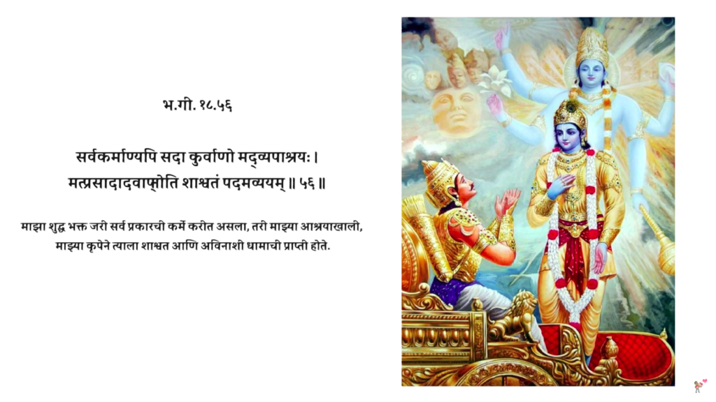 माझ्या कृपेने त्याला शाश्वत आणि अविनाशी धामाची प्राप्ती होते.”